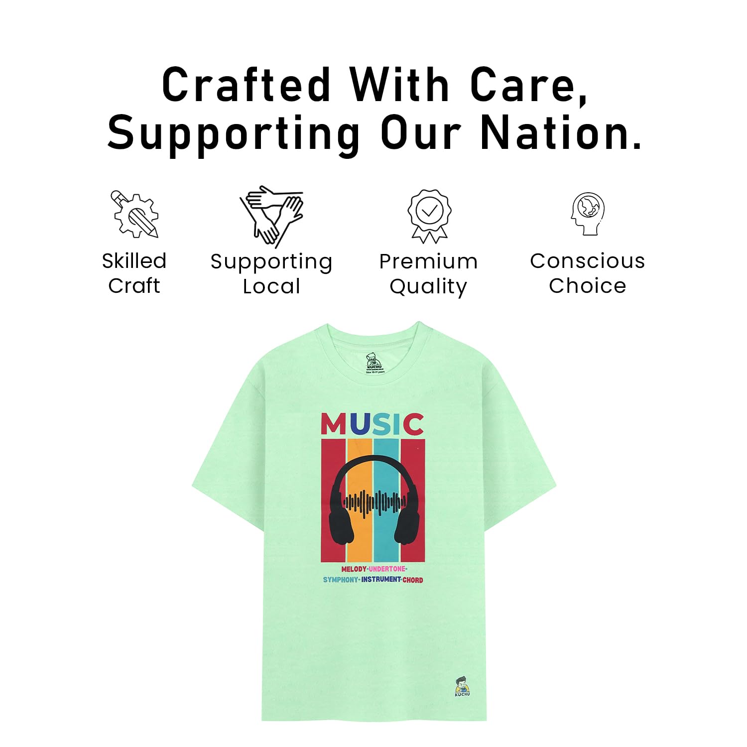 Kids’ Unisex T-Shirt | “Music” Graphic Digital Print | Soft Cotton-Modal Blend | Breathable, Stretchable & Durable Casual Wear for Boys & Girls