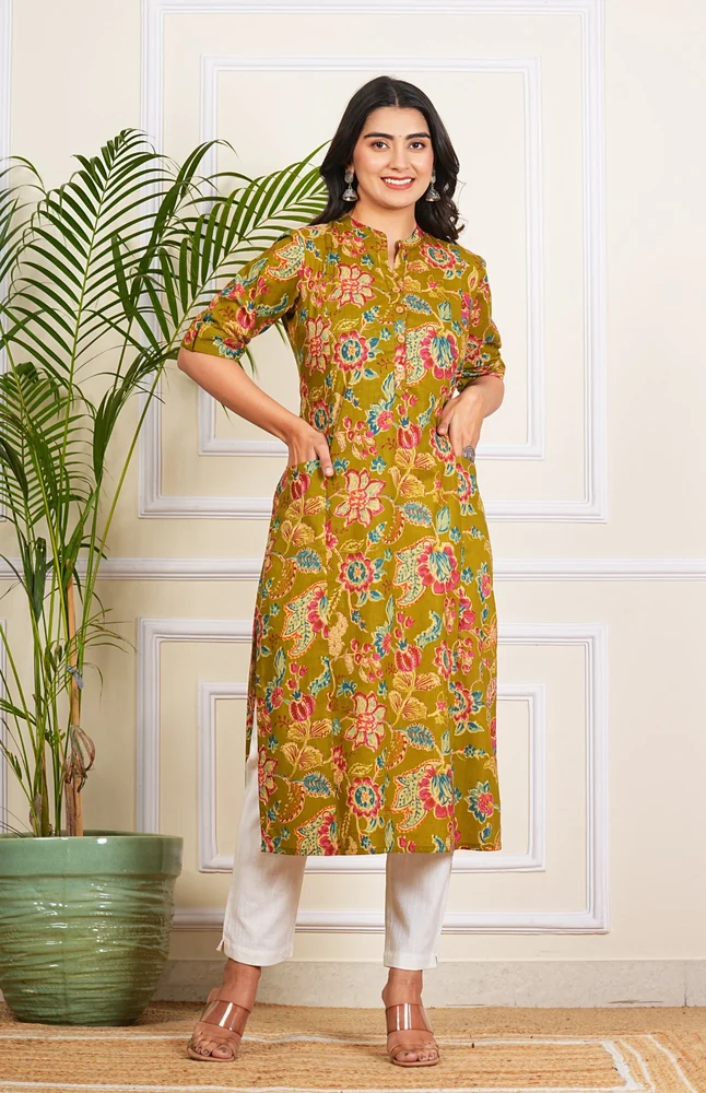 Mehendi Green Cotton Long Kurti