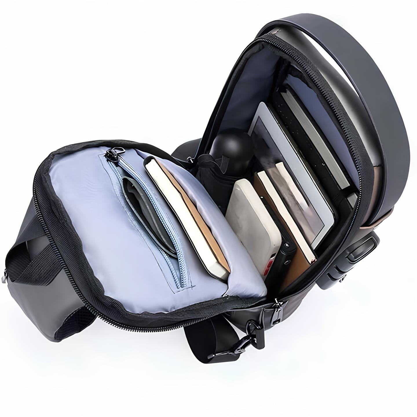 This slim, stylish unisex sling bag is perfect for travel, cycling, hiking, and daily use. It comes with a hard shell body and integrated password lock (default 0-0-0, resettable) for enhanced security. The bag includes a USB charging port to keep your devices powered on the move. Despite its compact look, it has large storage capacity to carry water bottles, umbrellas, phones, wallets, and more. A hidden back pocket keeps your most valuable items safe and easily accessible.