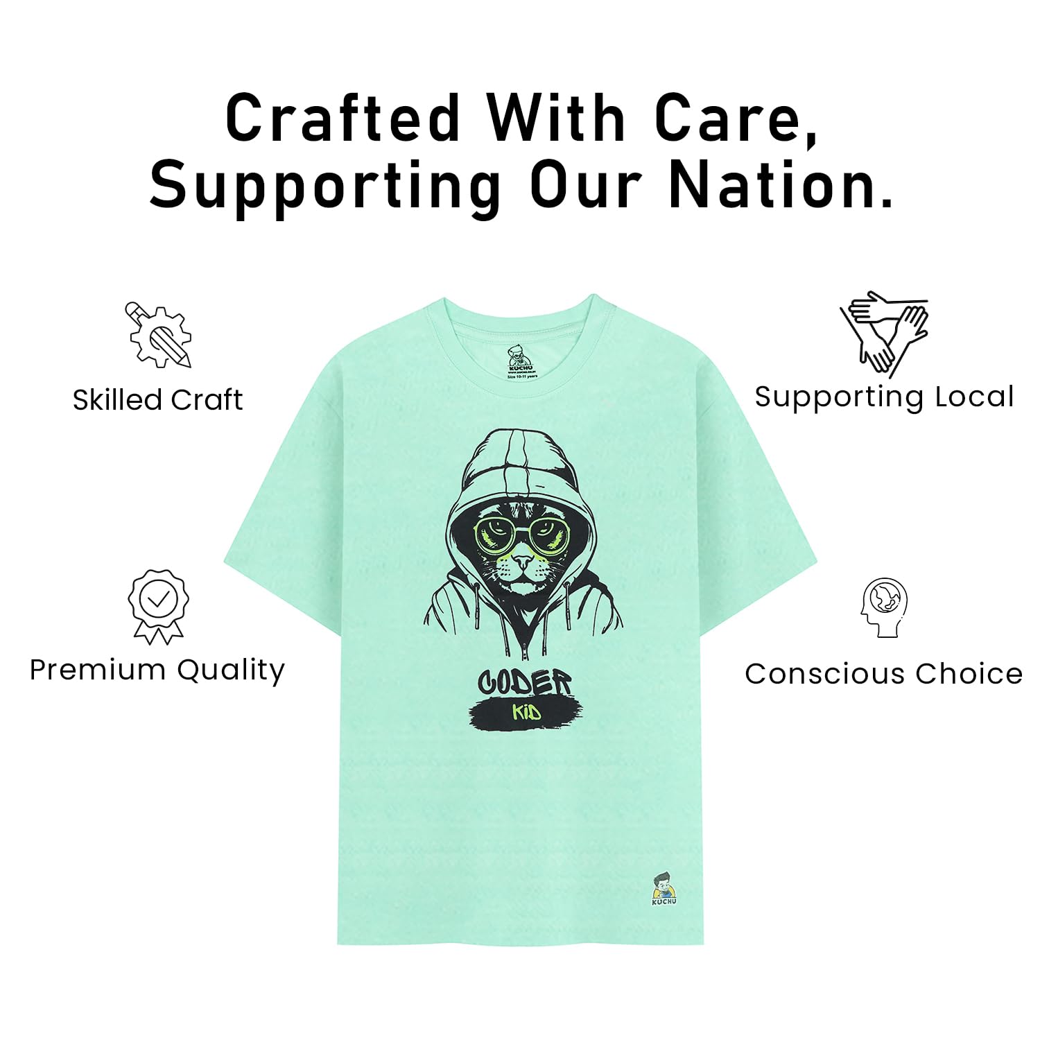 Trendy & Fun Coder Cat Design: Showcases a vibrant and creative “Coder Cat” digital print on a purple base, adding a stylish and playful element to your child’s outfit.