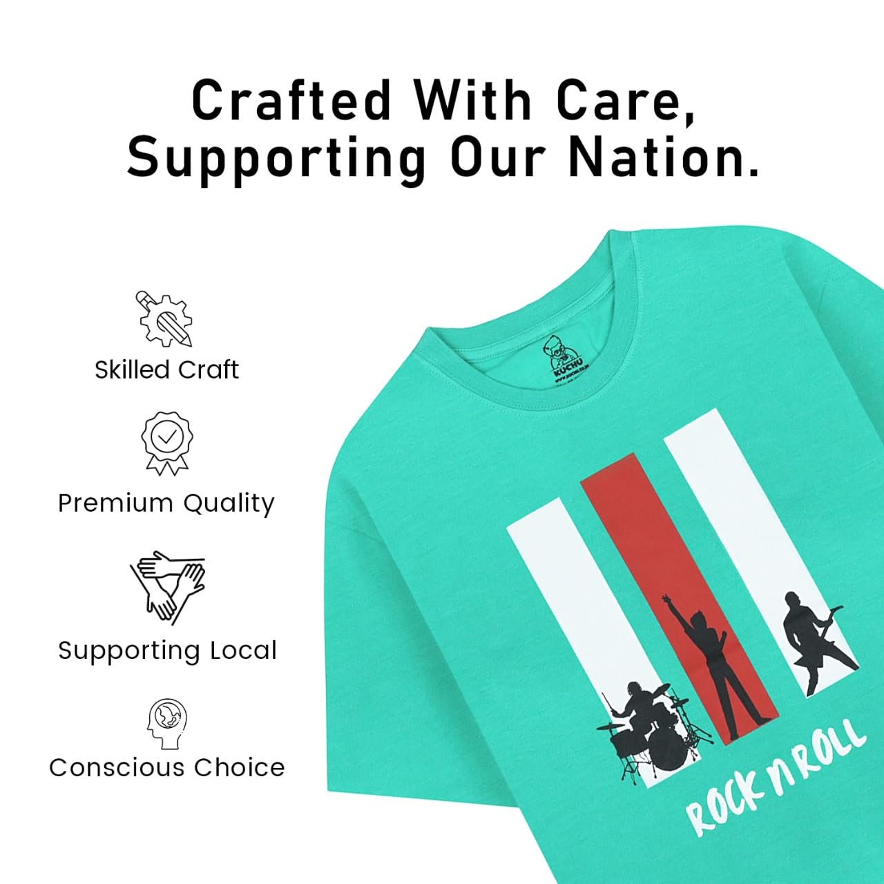 🎸 Bold Rock n Roll Digital Print – Features a stylish Rock n Roll themed design printed on a vibrant Lime Green base, giving kids a fun and trendy look.