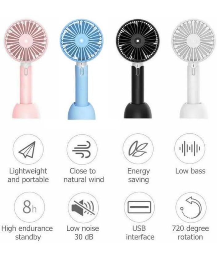🔋 USB Rechargeable & Long Battery Life – Equipped with a 1200mAh lithium battery, this handheld fan provides long-lasting cooling and can be recharged via USB cable using a laptop, power bank, or adapter.