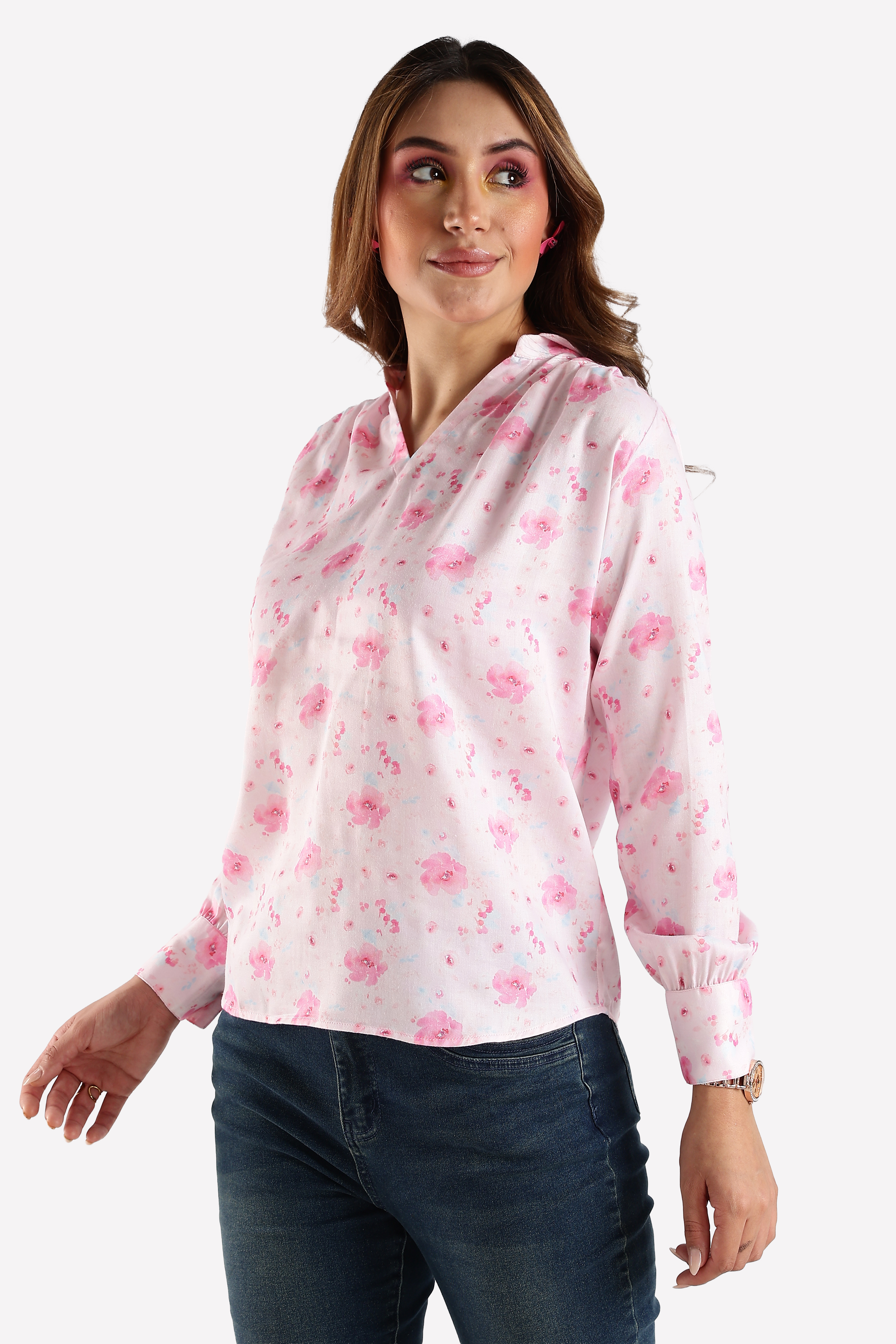 Upgrade Your Bottoms By Pairing Them With This Floral Top. It Has Mandarin Collar V Neck With Long Sleeve.