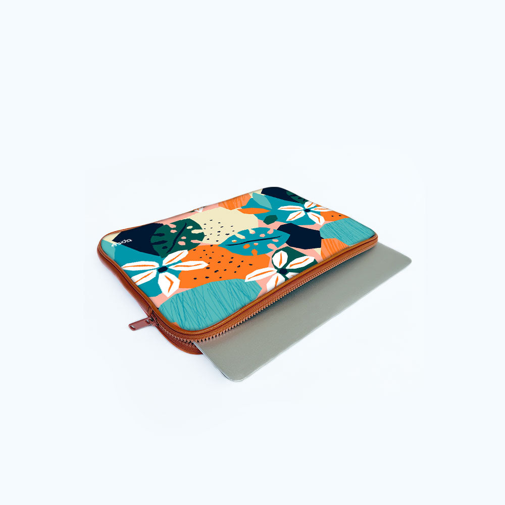 Protective, clever, and slimOur sleeve keeps your laptop or Macbook safe and stylish wherever the day takes you. With vibrant HD prints on soft fabric and a slim microfiber + foam padded lining, your laptop is safe from daily bumps and scratches. A sleek continuous zipper allows for easy one-handed access. Slip it under your arm, or into your bag, and you're ready to head outCarefully made to your orderHD prints are made based on the design you choose. Each bag is carefully hand-crafted after you place your order. A single compartment for all your device needs.Designed and proudly made in India!Fabric for generationsHandcrafted in India, this collection is made from soft and durable Dacron. Dacron is especially known for its durability, consistency, and quality. Dacron, unlike natural fiber, is hypoallergenic, non-absorbent, and mildew-resistant.Premium at every turnOur laptop sleeves are crafted with a durable, woven Dacron, and are lined with a soft microfiber to prevent scratching your computer. They also feature a sturdy YKK zipper fastener that can withstand everyday use. Soft vegan leather on the edges enhances the life of your sleeve