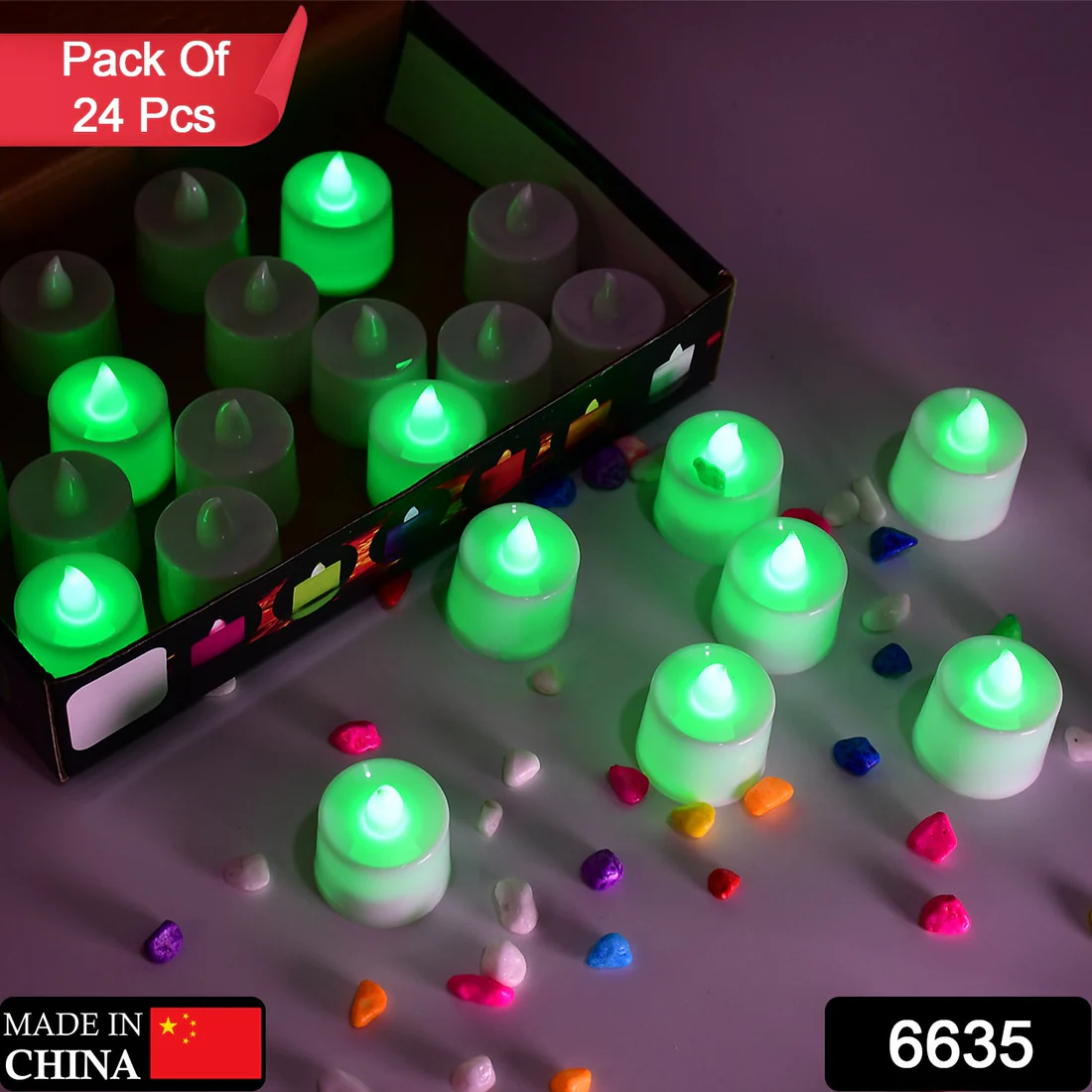 Green Flameless LED Tealights, Smokeless Plastic Decorative Candles - Led Tea Light Candle For Home Decoration, Diwali (Pack Of 24)