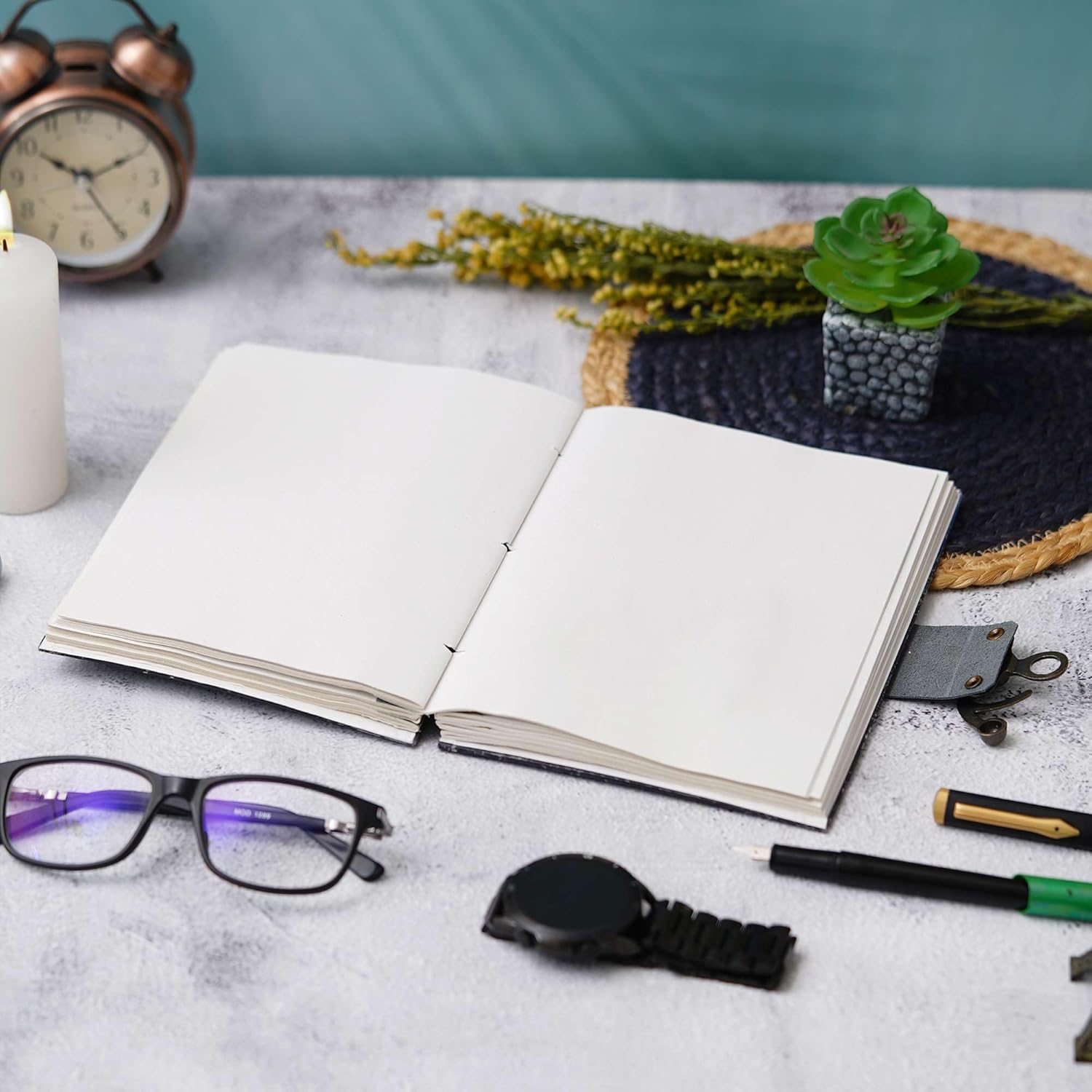 Handmade Excellence: Each journal is handcrafted with care, showcasing superior craftsmanship and attention to detail.Stylish Printed Design: Features an attractive printed cardboard cover that appeals to both men and women, adding a touch of sophistication to your writing.Secure Buckle Lock: Equipped with a buckle lock to keep your notes and entries safe and private, adding an extra layer of security.Generous Page Count: Contains 200 high-quality pages, providing ample space for writing, sketching, and note-taking.Versatile Use: Perfect for journaling, planning, drawing, and recording daily thoughts, making it a versatile tool for personal and professional use.Durable Construction: Made from durable materials, ensuring longevity and the ability to withstand daily use.Eco-friendly Choice: Crafted from eco-friendly materials, this journal supports sustainable practices and responsible sourcing.Portable and Compact: Conveniently sized to fit into bags and backpacks, allowing you to carry it with you wherever you go.Thoughtful Gift Idea: An excellent gift for writers, professionals, students, and anyone who appreciates high-quality stationery.