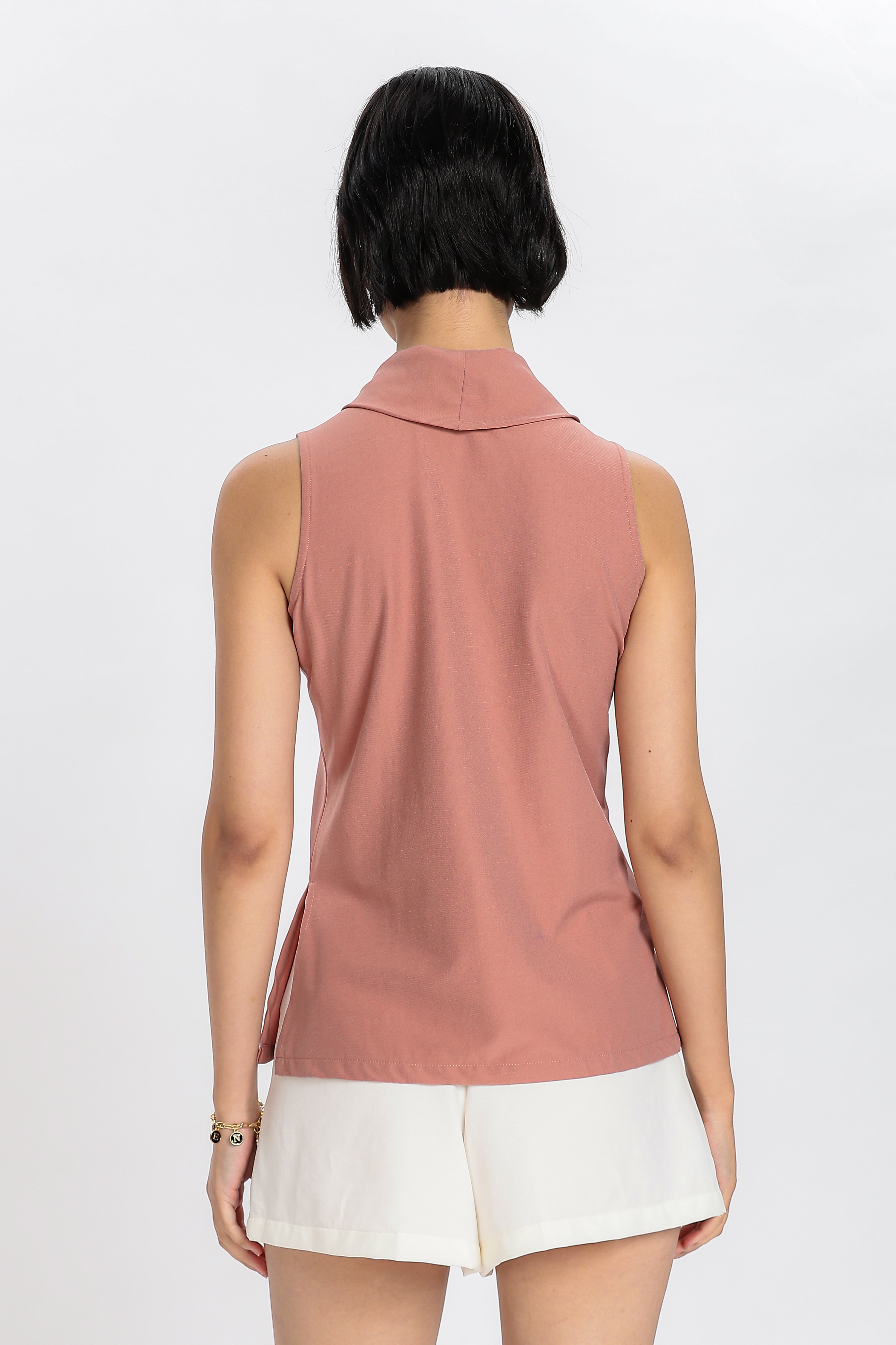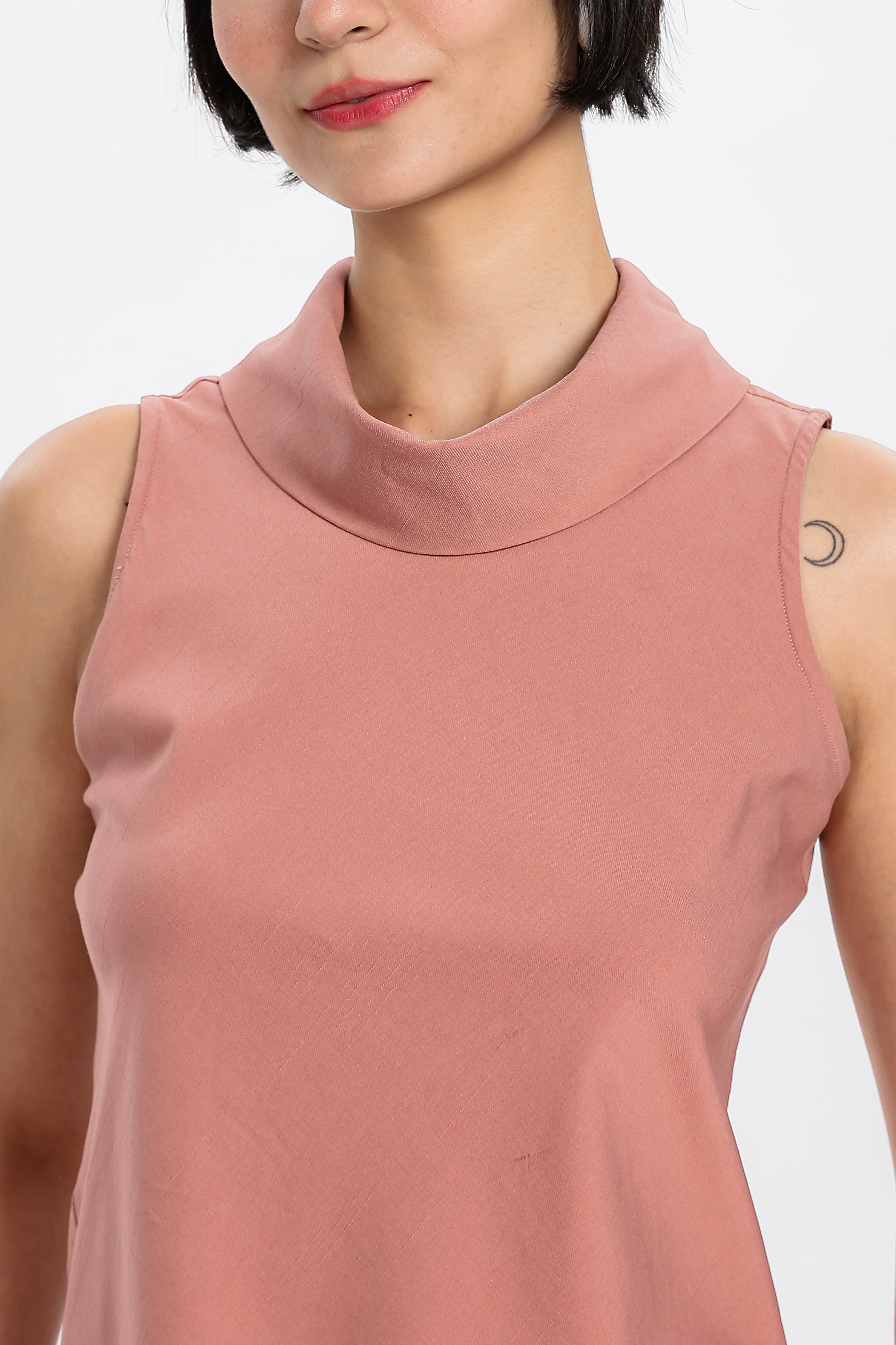 Pink High Neck Sleeveless Top In Premium Fabric, Regular Fit Design.