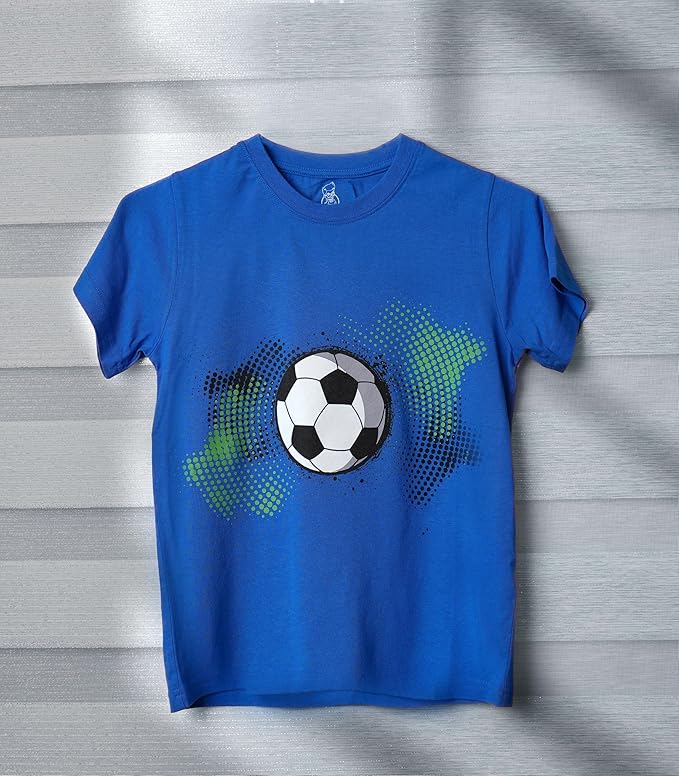 ✔️ Vibrant Football-Themed Digital Print – Perfect for Sports Lovers :Designed with a bold and eye-catching football print, this t-shirt is ideal for kids who love soccer and outdoor sports. The high-definition digital printing technology ensures rich colors that won’t fade, crack, or peel over time.