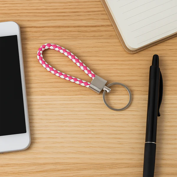 Keep your keys organized in style with this braided leather-style keychain featuring a strong metal key ring. Designed with a hand strap loop, this key holder provides a secure grip and makes it easy to carry your keys anywhere. The braided two-tone design gives it a modern, fashionable look while ensuring durability for everyday use. Ideal for car keys, bike keys, home, and office keys, this compact and lightweight keychain also makes a thoughtful gift item.Key Features :-Stylish braided leather-look keychain with two-tone design.Durable hand strap loop for secure grip and portability.Strong metal key ring for securely holding multiple keys.Lightweight, compact, and comfortable to carry.Suitable for car keys, bike keys, home keys, and office keys.Long-lasting design with a fashionable appearance.Makes an ideal gift for friends, colleagues, and family.Ideal For :-Car and bike owners for carrying vehicle keys.Home and office key organization.Daily use as a stylish and durable key holder.Gifting purposes for men and women.Promotional or return gift option.Specifications :-Product Type: Keychain with Hand Strap LoopMaterial: Braided Leather-Style Cord + Metal RingDesign: Braided Two-Tone Pattern (Strap with Metal Holder)Quantity: 1 PcFeatures: Lightweight, Durable, Stylish, PortableApplication: Car Keys, Bike Keys, Home & Office KeysKeywords :-leather keychain , braided key holder , hand strap keychain , keychain for car keys , metal ring keychain , bike keychain , office keychain , home key holder , keychain loop strap , keychain with strap , unisex keychain accessoryDimension:- Vol. Weight (Gm) :- 17 Product Weight (Gm) :- 7 Ship Weight (Gm) :- 17 Length (Cm) :- 11 Breadth (Cm) :- 3 Height (Cm) :- 1