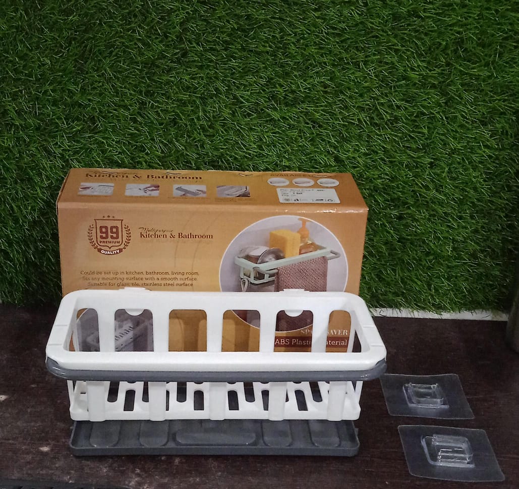 Pack In:- 1 x Kitchen Bathroom Shelf || Size:- 25 x 11 x 7.5 cm || Material:- Plastic || Color:- Multicolor (Sent as per avalibility) || Multipurpose Design: With a mix of a shelf, towel holder, hooks, storage rack, and drain tray, this wall organizer is a real multitasker. Whether you want to retain your bathroom requirements, showcase ornamental things, or store spices.The sink caddy can be used not only for the kitchen sink, but also for washstand and counter to store articles, remove sundries and keep clean and orderly. It is a good helper for life and kitchen storage.The upside bar is for hanging dish cloth, and the bottom holder is for keeping sponges, brushes, scrubbers, dish scrappers. Keep all you need in the same place and make your sink area neater and less cluttered.This sink caddy comes with an auto drain tray, no need to manually drain or remove the tray. You can put the kitchen sink organizer by the sink for a fast drain. The kitchen sponge holder is made of premium ABS, no rusting worries. It can be used not only for kitchen sink but also for washstand or counter to store your items and get rid of clutter.The 2 In 1 versatile kitchen sink caddy creates extra room to store brushes,sponges, soap,dish cloth instead of cluttering on the counter. Create a clean, clutter-free look in your kitchen sink area.