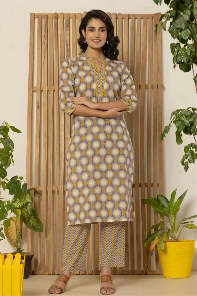 Brings to you this beautiful Printed Straight Kurta with Palazzos and Dupatta which is made from Cotton fabric with beautiful print all over.This kurta set has been designed keeping in mind the latest trends in contemporary casual fashion. The dress combines ethnic with the fashion of today and makes you stand out among others when you adorn it.This sets are ideal for warm weather, ensuring you stay cool while looking stylish.