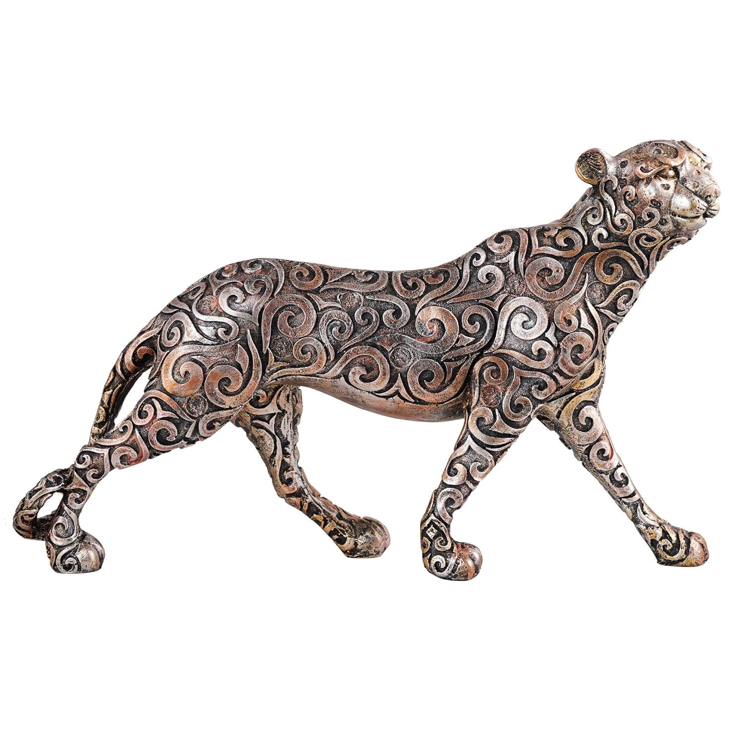 Exquisite Craftsmanship: Meticulously sculpted details bring this majestic creature to life, showcasing its muscular build and graceful movements. Antique Finish: Enhanced with a vintage finish that adds an old-world charm to the piece, making it a timeless addition to your collection. Durable Material: Made from high-quality resin, this sculpture is robust, stable, and made to last, perfect for display in any indoor environment. Versatile Decor Piece: Ideal for placing on mantels, bookshelves, entryway tables, or in a display cabinet. This piece makes a bold statement in any setting. Ideal Gift Choice: A perfect gift for wildlife enthusiasts, art collectors, or anyone looking to add a sophisticated touch to their home decor. Great for occasions like birthdays, holidays, or housewarming parties.