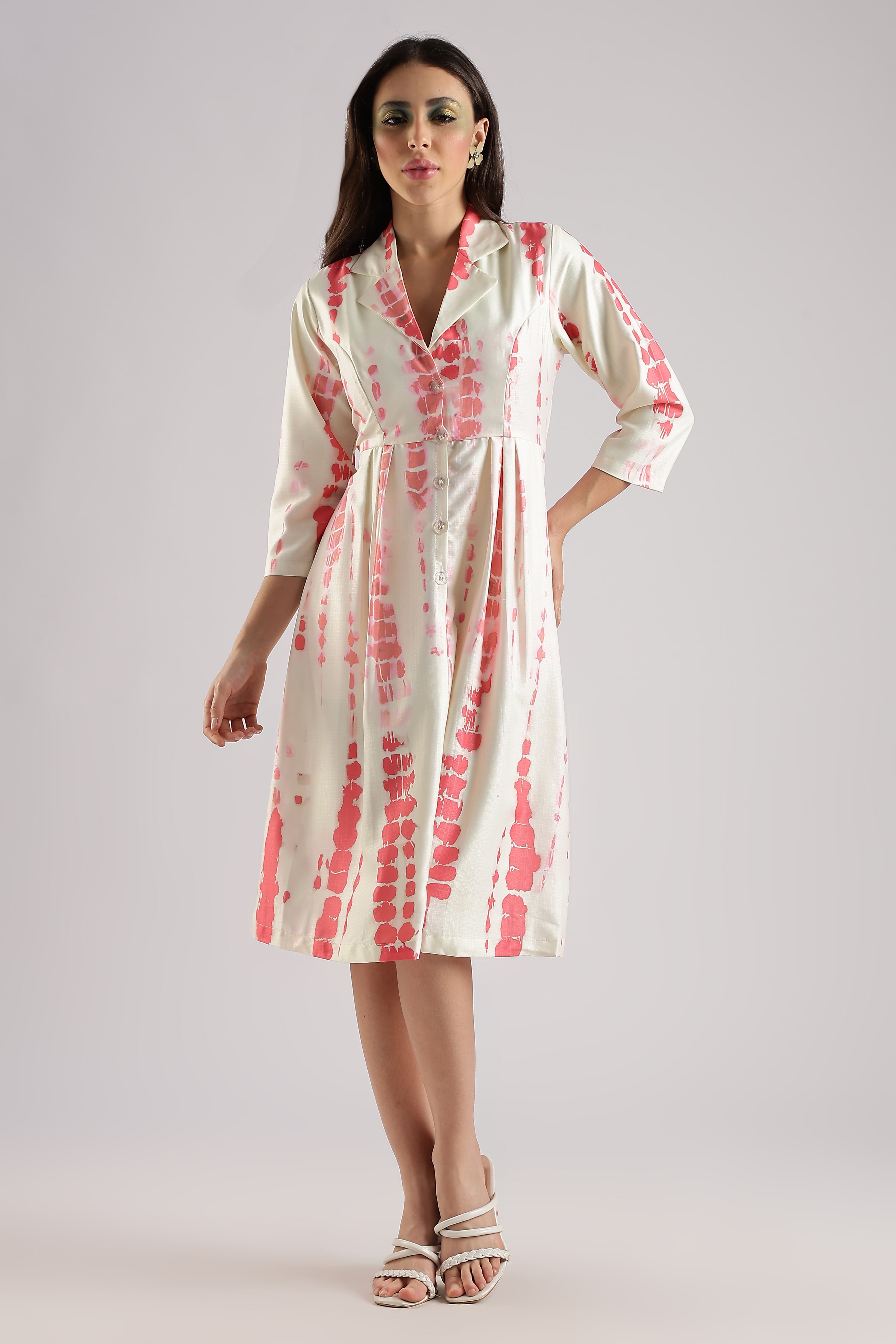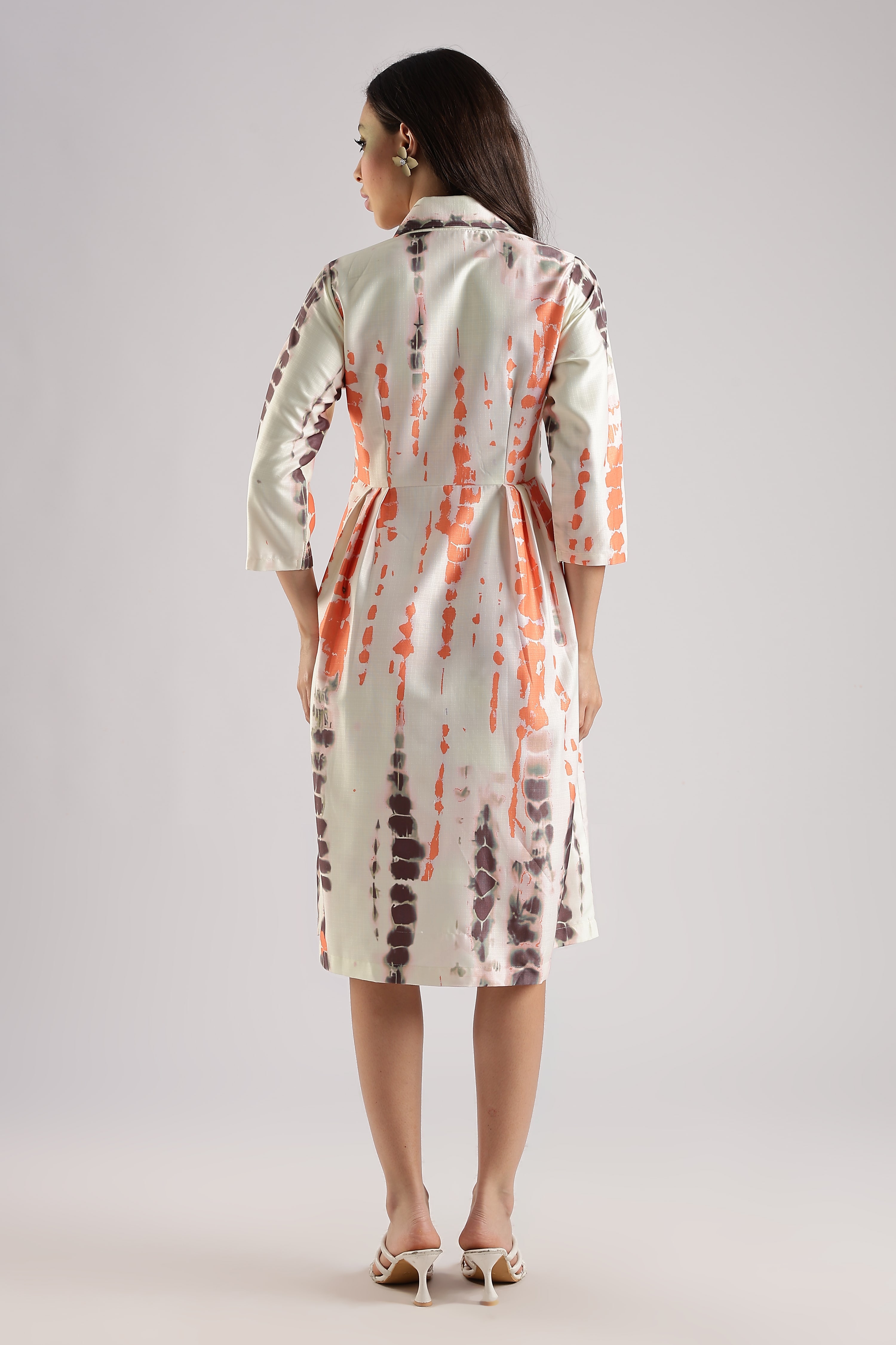¾ SLEEVE SHIBORI PRINT MIDI DRESS TAILORED TO PERFECTION FROM PREMIUM QUALITY FABRIC. IT ASSURES A SOFT AND SOOTHING TOUCH AGAINST THE SKIN.