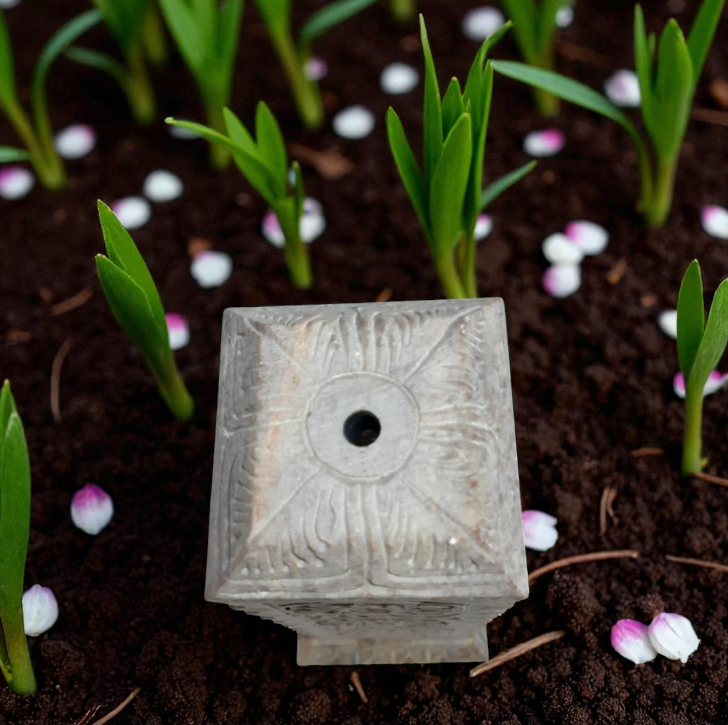 Enhance your living space with this elegantly hand-carved soapstone incense holder tower.Material: Natural soapstone with a smooth, earthy finishDesign: Intricate floral latticework that allows fragrant smoke to diffuse beautifullyFunctionality: Ideal for burning incense sticks or cones while keeping ashes neatly containedFeatures: Detachable base for easy cleaning and convenient placement of incenseUsage: Perfect for meditation rooms, living spaces, or gifting as a soothing home décor accentA blend of traditional artistry and practical design to create a calming, aromatic ambiance in any setting.