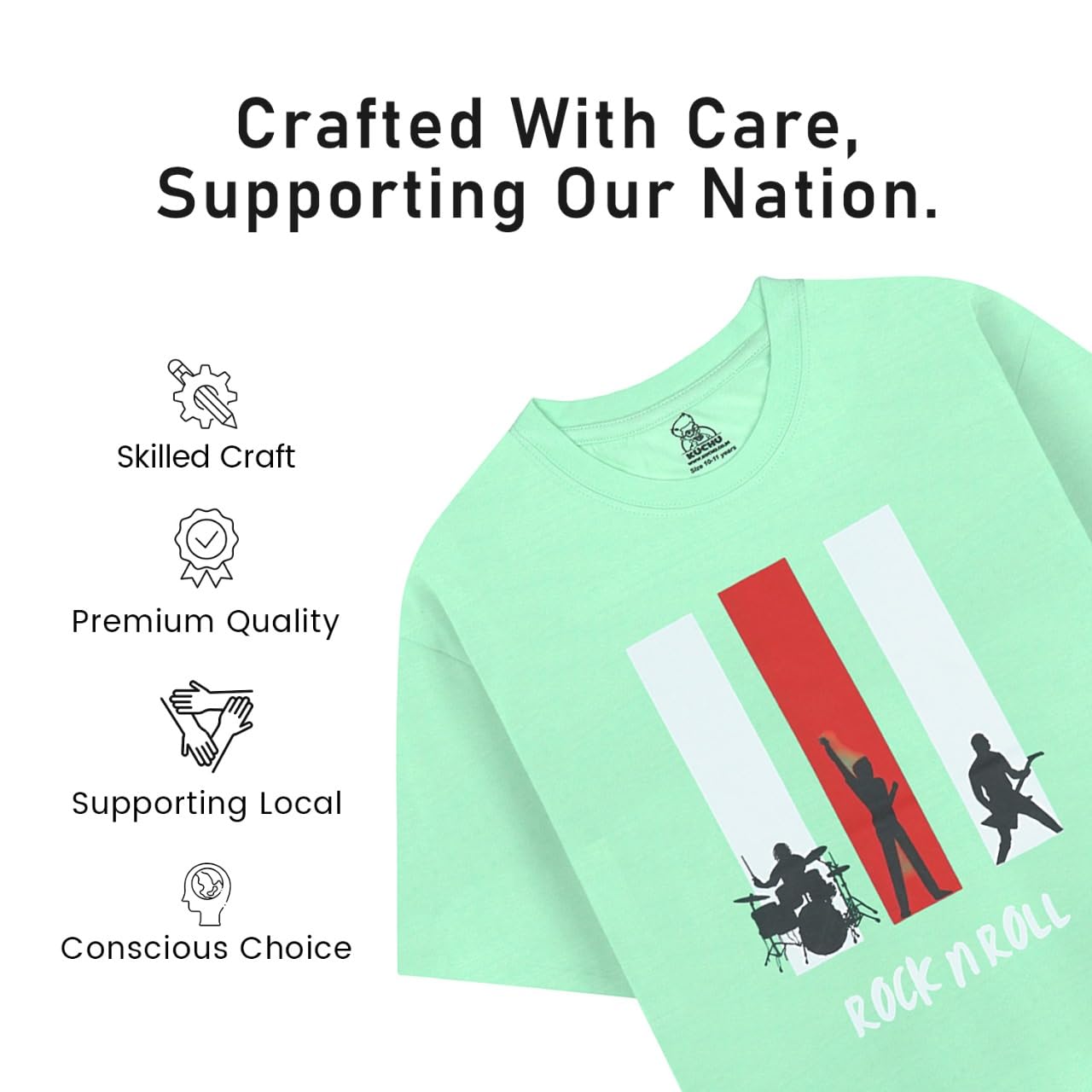 🎸 Bold Rock n Roll Digital Print – Features a stylish Rock n Roll themed design printed on a vibrant Lime Green base, giving kids a fun and trendy look.