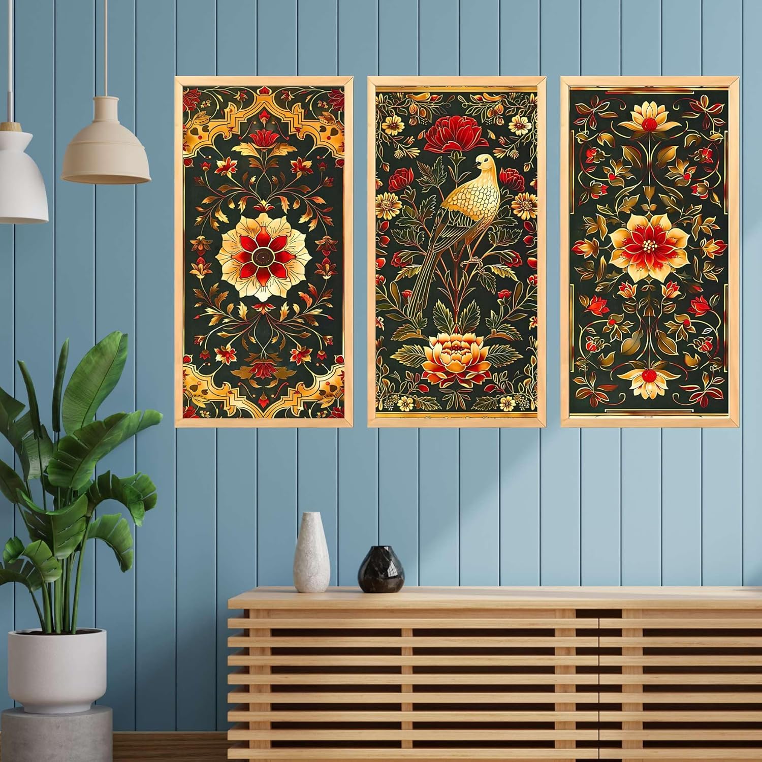 Wall Hangings: Our intricate set of three paintings provide unique wall art, perfect for adding a touch of elegance to your living room and other spaces.