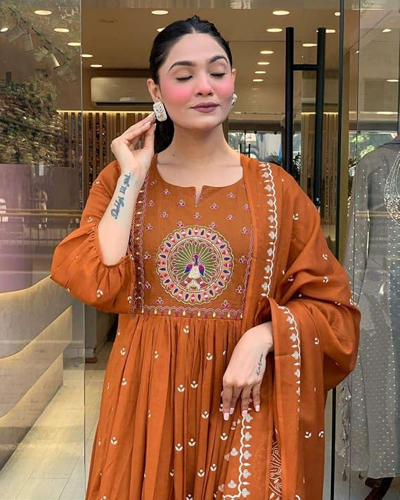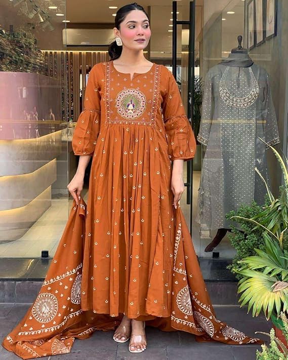 Elegant Embroidery Work – Beautiful thread work adds a rich ethnic look.Flared Anarkali Design – Stylish and flattering fit suitable for all body types.