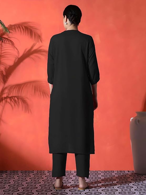 Women's Cotton Embroidered Straight Kurti with Pant Set