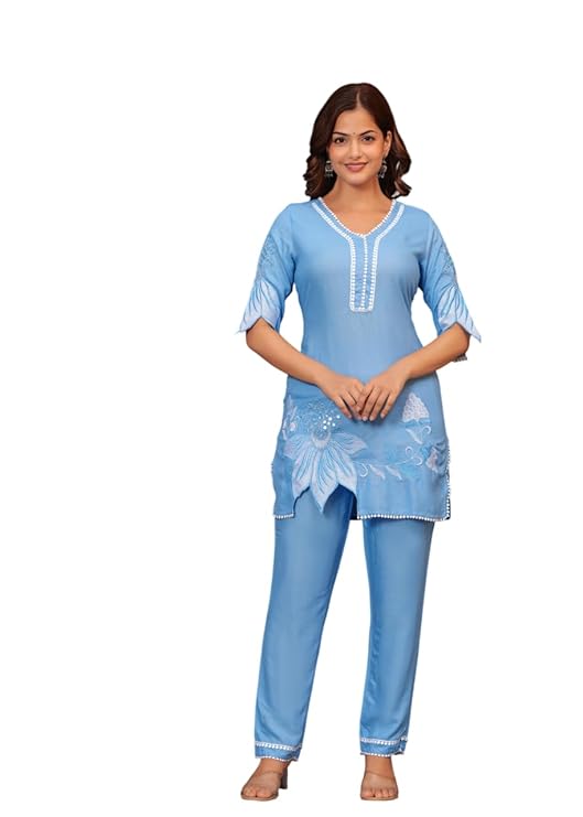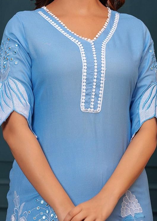Comfortable & Relaxed Fit: Designed with a flattering straight Anarkali A- Line Nayra-cut Kurti kurta Suit and relaxed-fit Salwar palazzo pants for ultimate comfort and ease of movement.