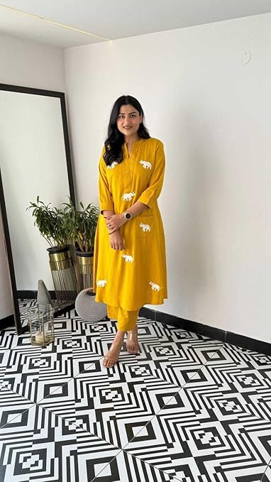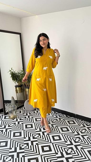 Premium Cotton Blend Fabric: Soft, breathable, and lightweight Cotton blend fabric ensures comfort and durability for all-day wear.Stylish Embroidery Embroidered Printed Design: Features a beautiful, eye-catching print that combines traditional and modern elements for a chic and elegant look.