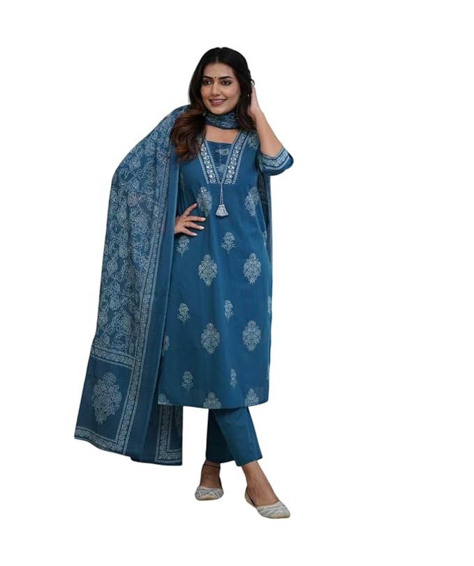 Comfortable & Relaxed Fit: Designed with a flattering straight Anarkali A- Line Nayra-cut Kurti kurta Suit and relaxed-fit Salwar palazzo pants for ultimate comfort and ease of movement.