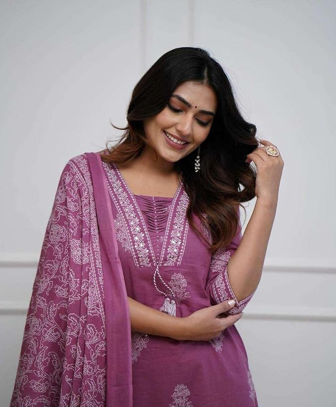 Comfortable & Relaxed Fit: Designed with a flattering straight Anarkali A- Line Nayra-cut Kurti kurta Suit and relaxed-fit Salwar palazzo pants for ultimate comfort and ease of movement.