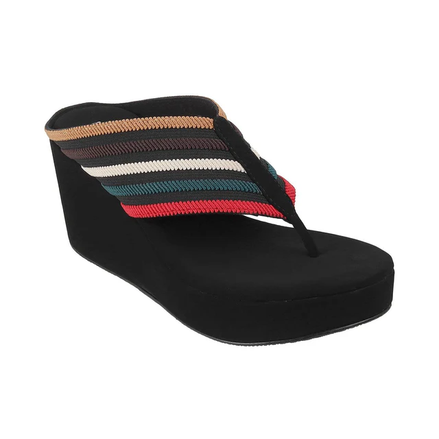 Brighten your casual footwear collection with these Women's Multi-Stripe Wedge Flip-Flops. Featuring vibrant, colorful striped straps, these flip-flops add a fun and trendy touch to any outfit. The comfortable wedge sole offers a subtle lift while ensuring stability and support for all-day wear. With a cushioned footbed and durable construction, these flip-flops are perfect for casual outings, vacations, or relaxed evenings. Pair them with your favorite summer dresses or casual attire for a stylish and effortless look!