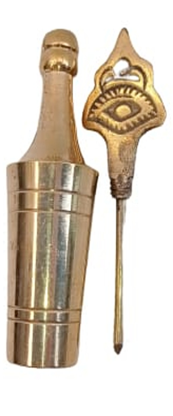 Mii Art brass surmedani with funnel/kuppi and surma use in eye's muckap[size-8-cm]pack of-1funnel,2 surma packed,1 brass surmedani.Mii Art Introducing our Handmade Brass Surmedani, a timeless piece that seamlessly blends traditional craftsmanship with modern elegance. Meticulously crafted by skilled artisans, this surmedani is not just an accessory but a cultural statement. The brass construction adds a touch of sophistication, showcasing the dedication and artistry invested in its creation. Designed for the purpose of applying suma to the eyes, this surmedani promises a graceful and authentic approach to eye makeup. Suma, a traditional eye cosmetic, finds its perfect companion in this intricately designed surmedani. The rounded contours and smooth edges ensure a comfortable and precise application, creating a mesmerizing look that reflects the rich heritage of cultural practices. Embrace the charm of handmade craftsmanship with every use of our Brass Surmedani. Whether it's a part of your daily beauty routine or a special occasion, let this piece add a touch of tradition and allure to your eye makeup ritual. Elevate your muckap experience with this exquisite, handcrafted accessory that stands as a testament to the timeless beauty of cultural adornments.